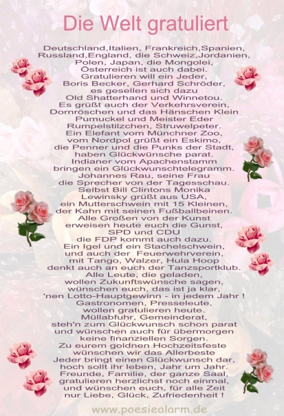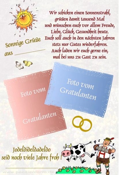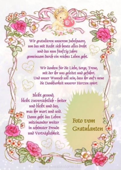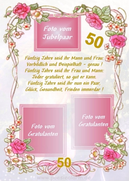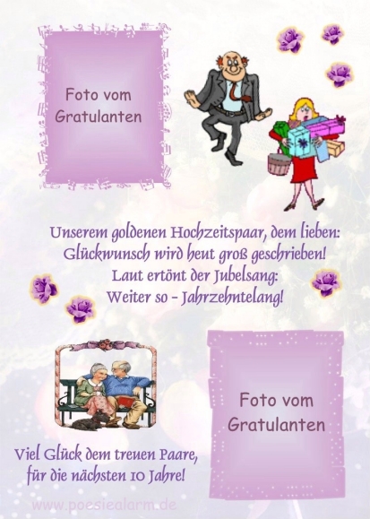 Hier sehen Sie einige Gestaltungsbeispiele aus dem Album zur goldenen Hochzeit meiner Schwiegereltern. Auch hier hatte ich die fertigen Seiten als 13x18 Fotos bestellt und in ein goldenes Hochzeitsalbum geklebt Viele der Texte auf diesen Seiten habe ich über Jahre gesammelt, die Autoren sind mir leider nicht bekannt. Einige Verse sind aber auch von mir. Klicken Sie bitte auf die Bilder, wenn Sie diese etwas grösser sehen möchten. Zur weiteren Verwendung sind sie nicht geeignet!